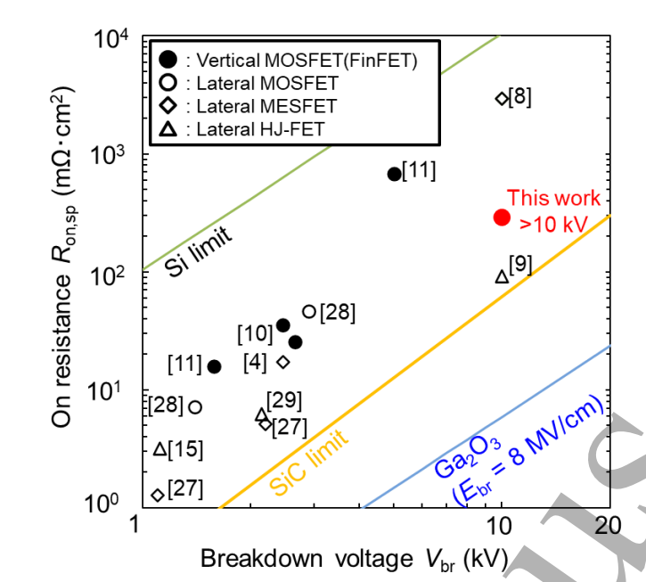 由日本NCT的研究团队在学术期刊 Applied Physics Express 发布了一篇名为 Multi-fin normally-off β-Ga2O3 vertical transistor with a breakdown voltage exceeding 10 kV(具有超过10kV击穿电压的Multi-fin常闭 β-Ga2O3 垂直晶体管)的文章。