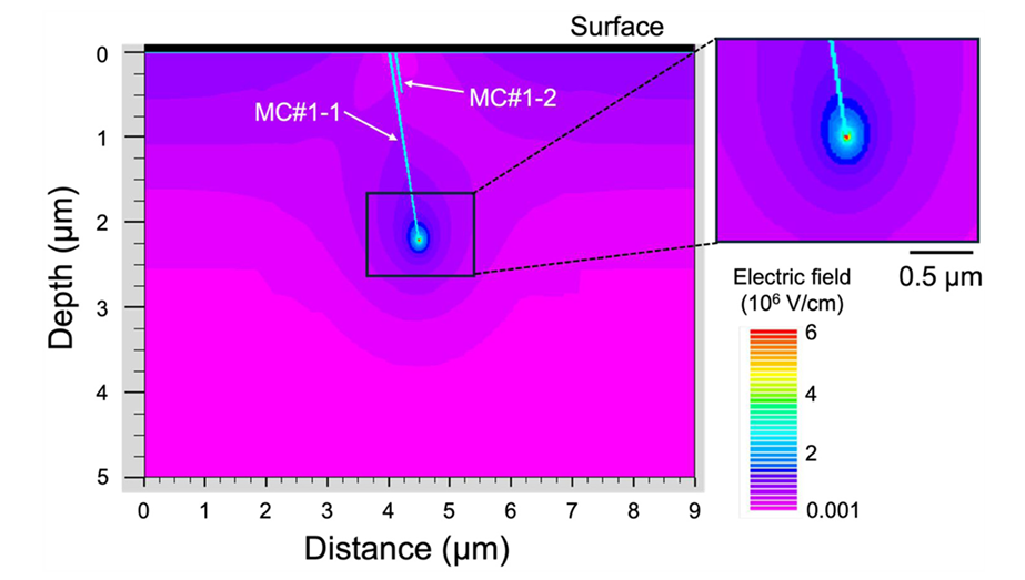 图 8. 在反向偏压 −80 V 下,MC #1 横截面的电场分布模拟图。